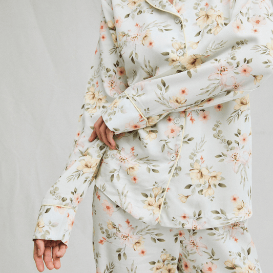Pijama Conjunto Rosa Pantalón y Blusa Manga Larga con Flores, en verde y damasco - Parsons