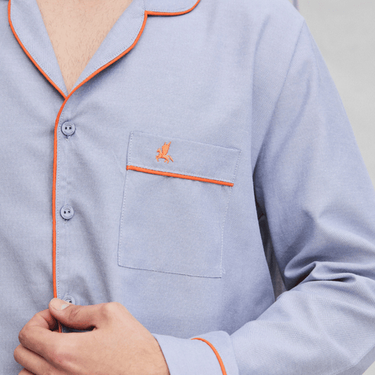 Pijama Andrés de tela Oxford color gris con vivo naranjo - Parsons