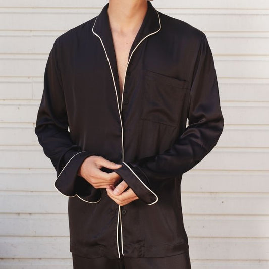 Conjunto camisa y bata negra Satín con terminaciones color plata - Parsons