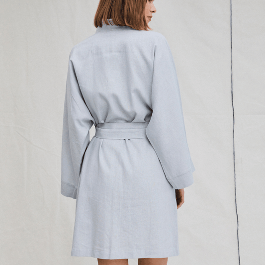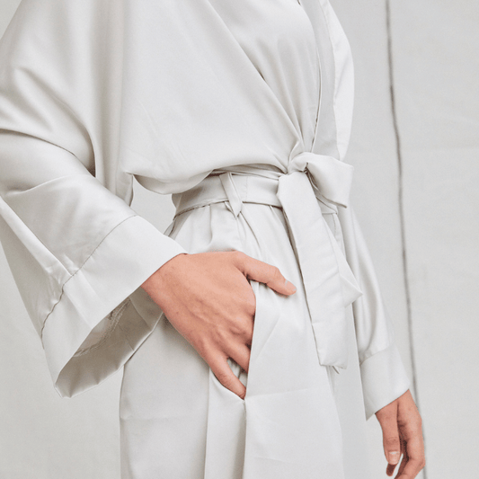Bata Larga Gris de Satín Viscosa con Cinto - Parsons