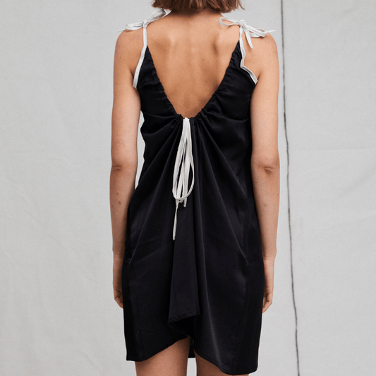 Conjunto camisa y bata negra Satín con terminaciones color plata - Parsons