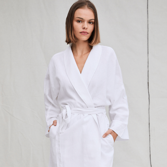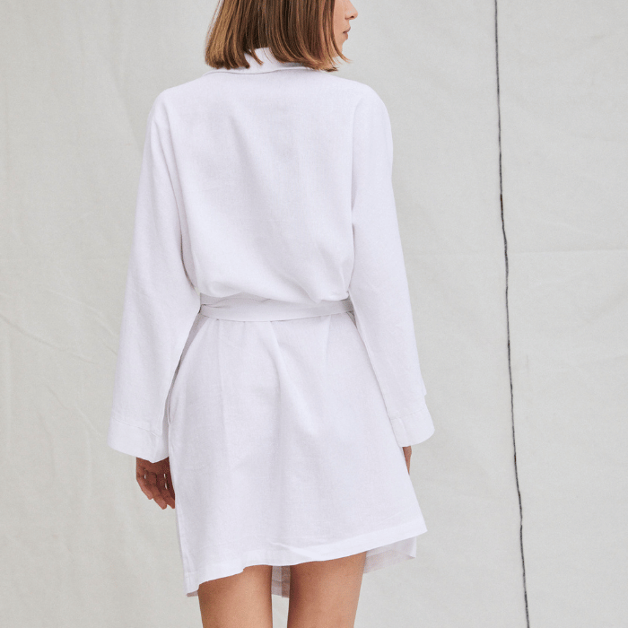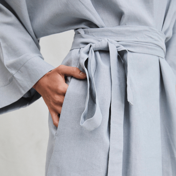 Bata de lino cómoda y protectora de nuestra piel, es ideal para acompañar nuestros momentos de descanso, su diseño temporal tiene un corte de manga amplia, cinturón ajustable, la convierte en una prenda perfecta para usar en casa en el spa o incluso como sobre prenda en el verano, después de un baño de mar, las propiedades de lino, además de ser ecológico, aporta frescura y textura única que mejora con cada lavado.