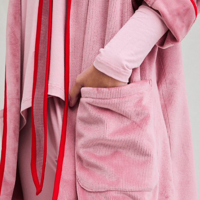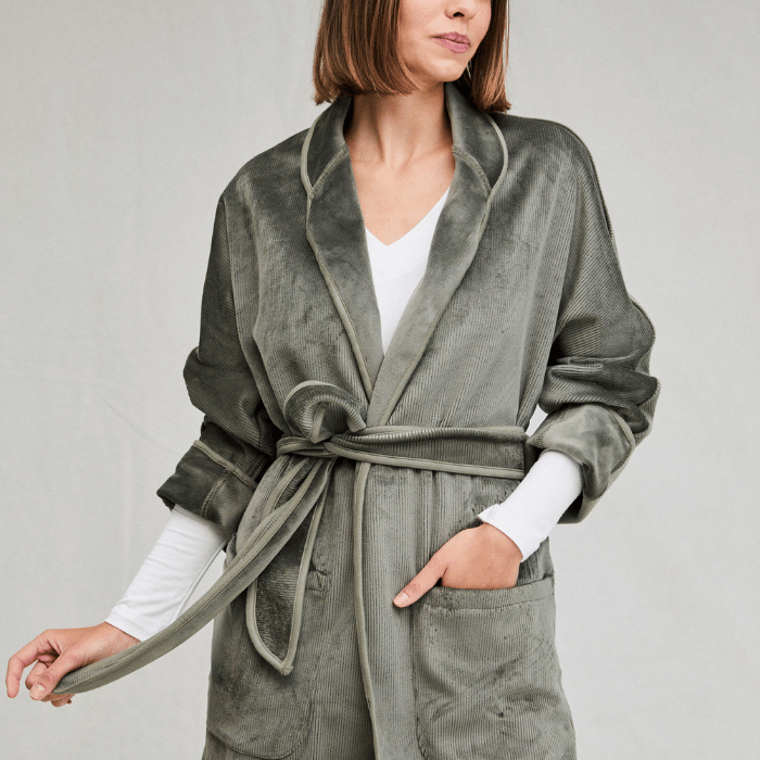 Bata kimono Doroti en colores verde olivo, café moro y rosa con laso y vivo - Parsons